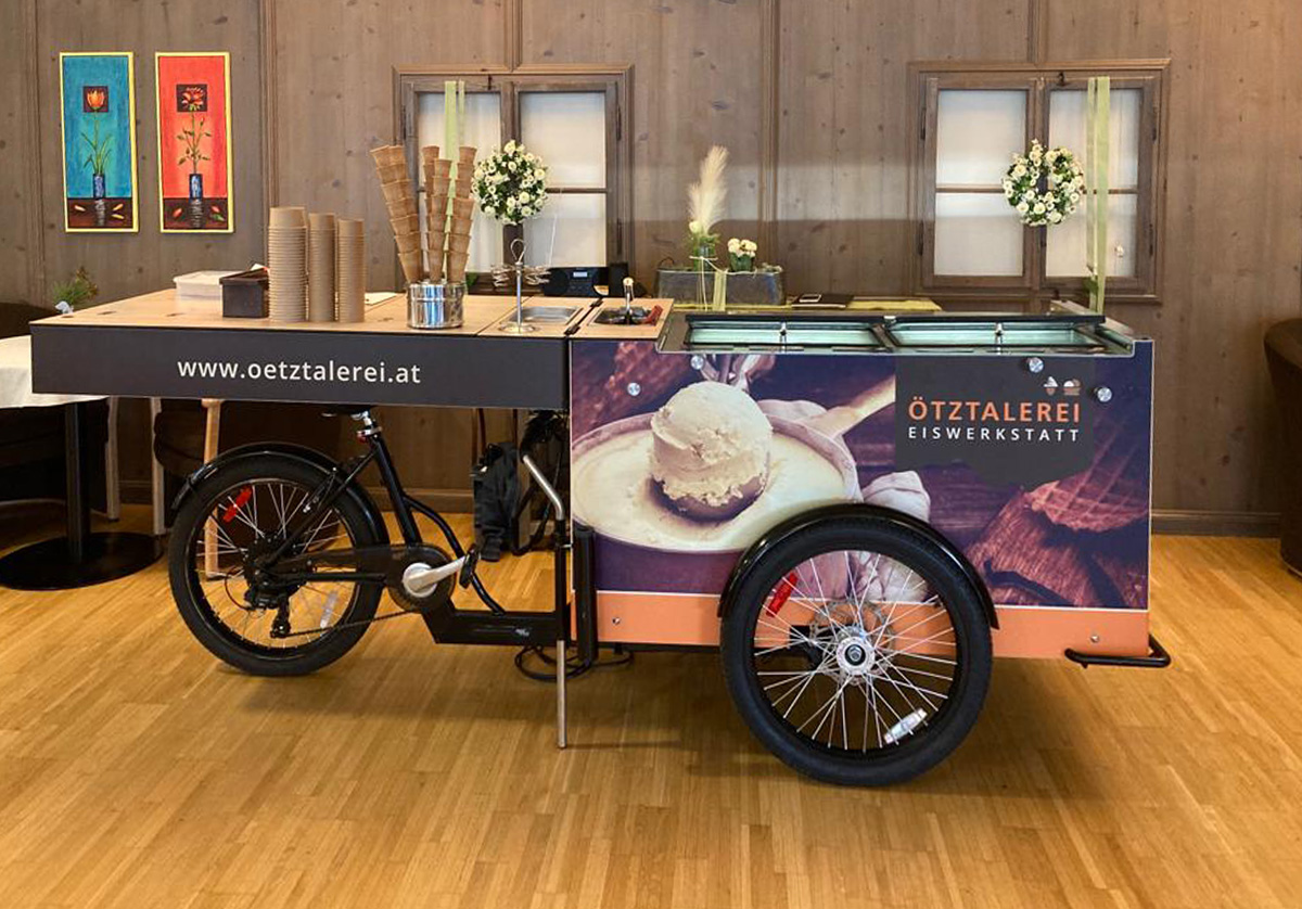 Unser mobiles Eisradle und Eiswagele sind nicht nur ein optischer Blickfang, sondern können auch für Veranstaltungen und Events gemietet werden und bieten euren Gästen somit eine köstliche Erfrischung, mit hausgemachtem Eis aus der ÖTZTALEREI Eiswerkstatt. Ob drinnen oder draußen! Übrigens: das Eisradle ist überall einsetzbar und ist bis zu acht Stunden stromunabhängig!